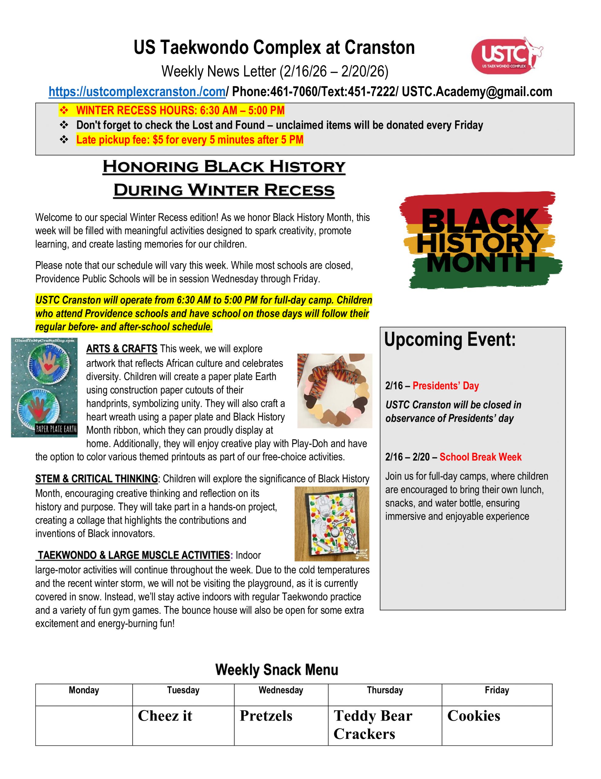 WEEKLY NEWSLETTER: Month of February 2026